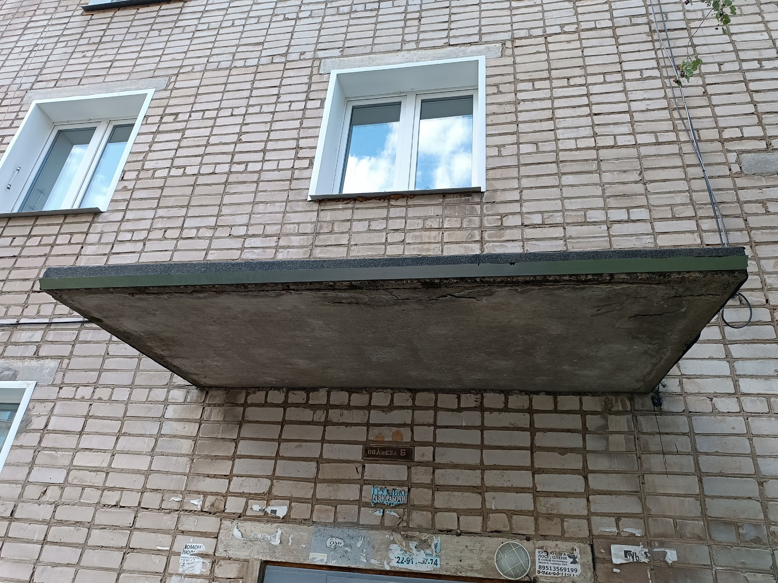 Первое впечатление — огороженная детская площадка, свежий асфальт на тротуаре и свежая кровля на приподъездных козырьках. Под козырьками заштукатурено, но не везде.