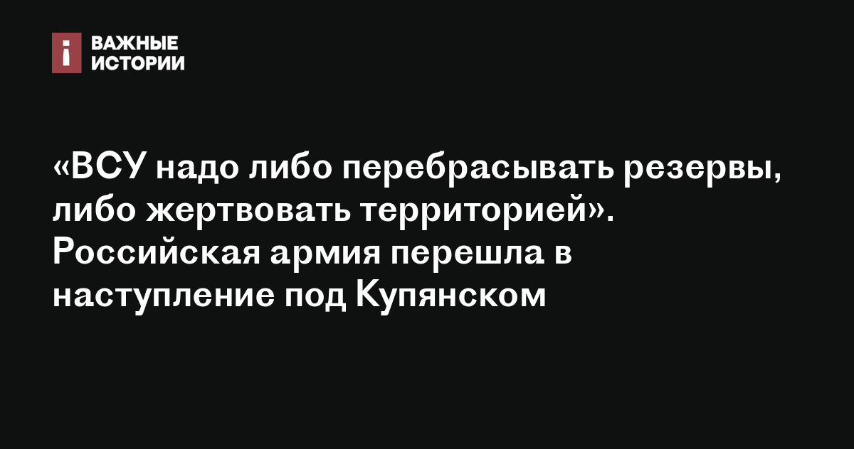 «ВСУ надо либо перебрасывать резервы, либо жертвовать территорией». Российская армия перешла в наступление под Купянском