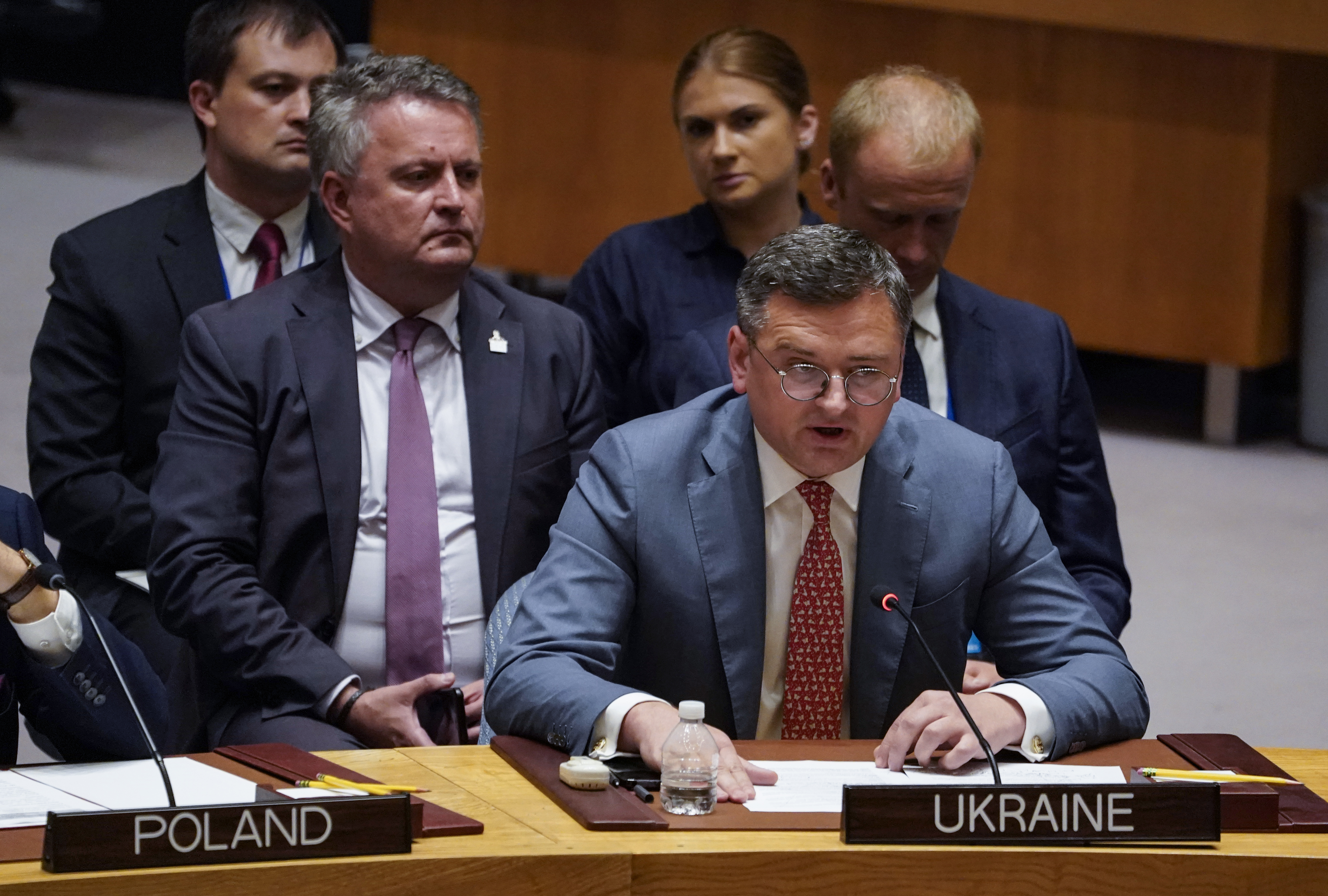 "Россия шантажирует мир", – заявил на заседании в штаб-квартире ООН в Нью-Йорке министр иностранных дел Украины Дмитрий Кулеба. По его словам, действия российских властей "затрагивают жизни миллионов украинцев и ещё десятков миллионов людей по всему миру". В первую очередь, как отметил Кулеба, это касается жителей стран Африки и Азии, которые сталкиваются с угрозой роста цен на продукты питания и угрозой голода.