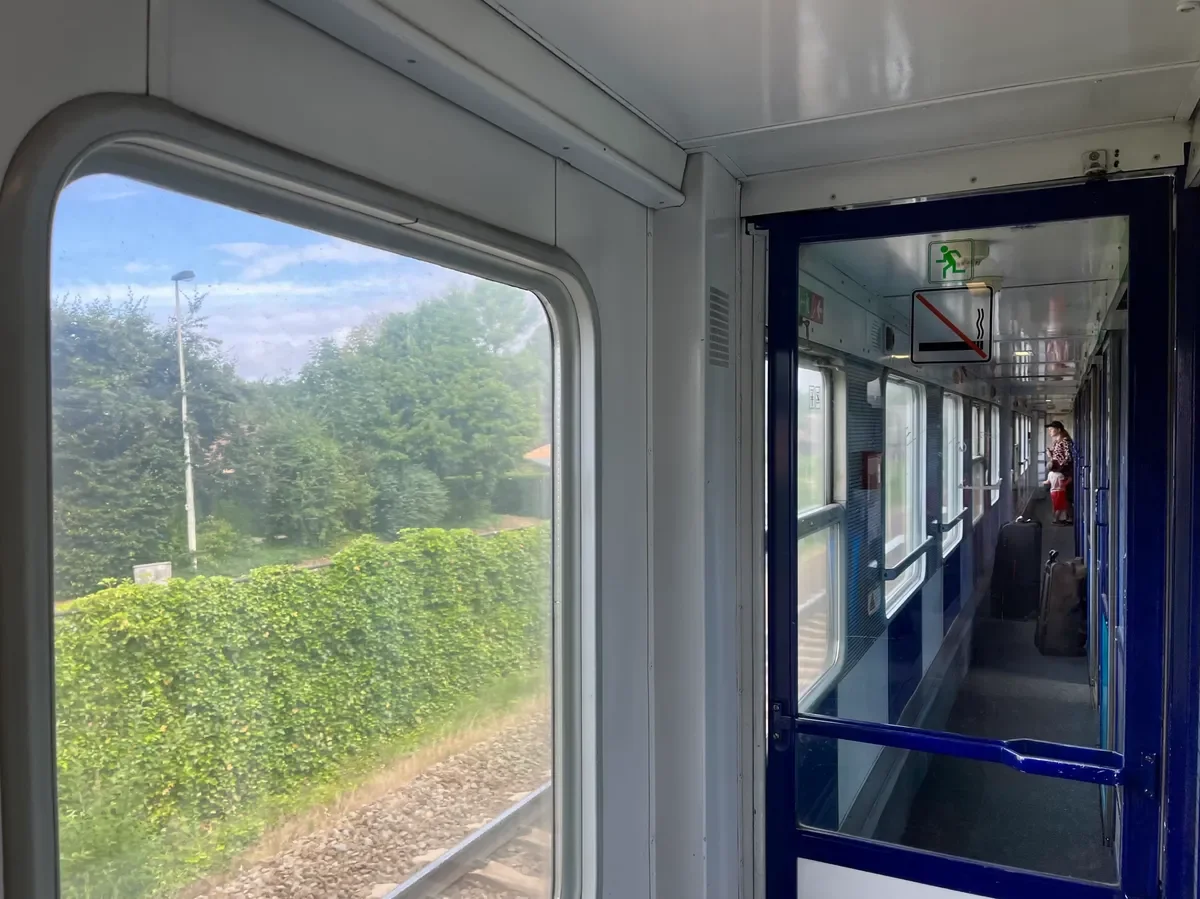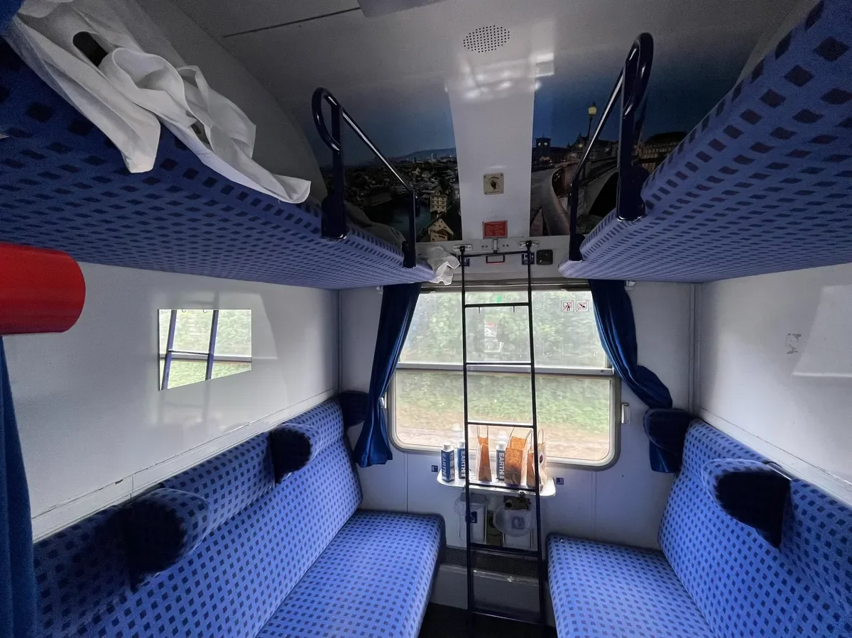 Joining me on this journey are three passengers — two girls and a woman around 60 years old. Since it is the first time for all of us traveling on the European Sleeper, we spend about five minutes attempting to locate the ladder in the compartment that leads to the upper shelves. It feels like a mini quest, as there is no clear instruction indicating its whereabouts (a small icon on the compartment wall offers little guidance).