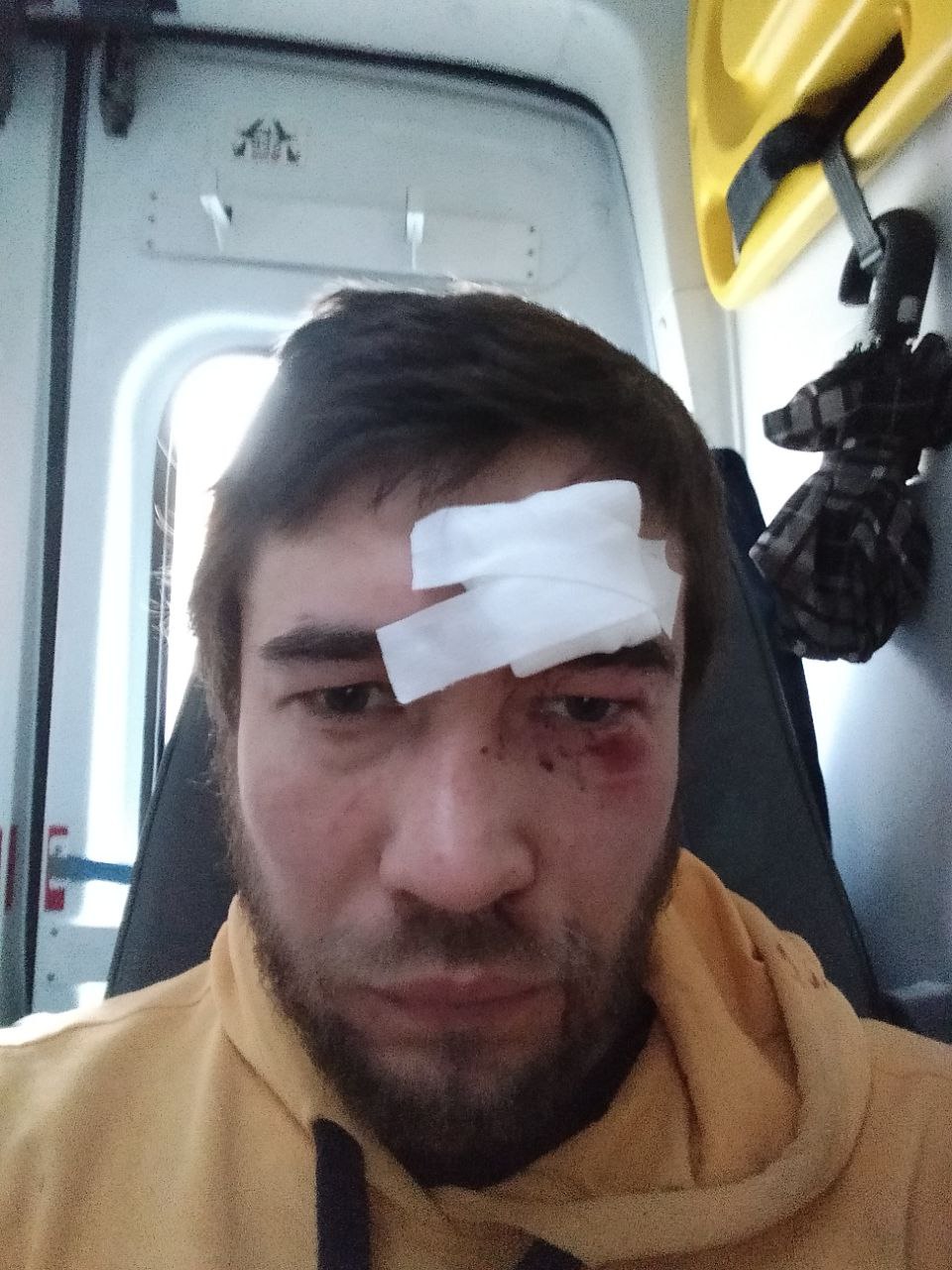 В конце концов его отвезли в Мариинскую больницу. Там продержали еще несколько часов в изоляционном блоке с "веселыми ребятами – бомжами, алкашами, сумасшедшими бабками", говорит Юрий. Врачи зафиксировали у него ушибленную рану лба, ушиб грудной клетки и ссадины.