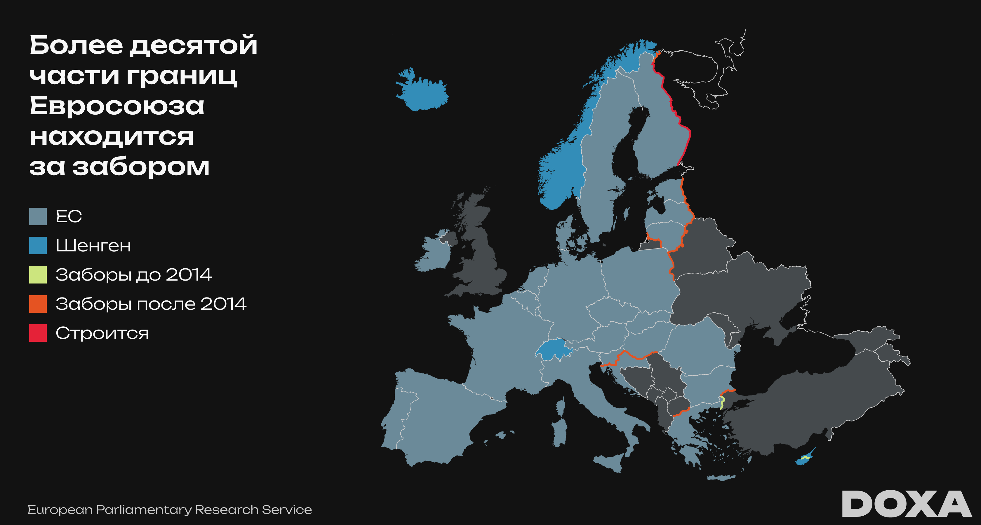 Европейские страны тратят десятки миллионов евро на строительство заборов на границах. Более того, правительства запрашивают финансирование проектов со стороны Европейского союза. В 2021 году с просьбой выделить более 210 миллионов евро на строительство стен с Турцией и Беларусью обратились Греция и Литва. По подсчетамОколо 1,5 миллиарда на строительство стен на границах с Сербией и Хорватией потратила Венгрия. Также в лидерах по затратам на стены — Польша, Литва и Болгария. DOXA, в XXI веке европейские страны потратили более 2,3 миллиарда евро на строительство стен. Эта сумма может быть еще выше, поскольку некоторые стены находятся в процессе строительства, а уже возведенные требуют патрулирования и поддержания инфраструктуры.