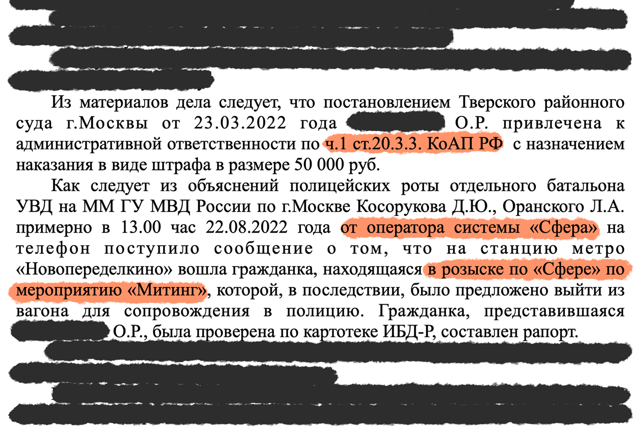 ОВД-Инфо занимается обжалованием использования СРЛ не только в Европейском суде, но и в российских судах. В конце 2022 года с помощью ОВД-Инфо задержанные подали 18 административных исков, в которых требовали признать незаконными задержания и использование СРЛ «Сфера» в московском метро. Все иски касаются превентивных задержаний, количество которых сильно выросло в 2022 году: людей, которые, по мнению власти, могли потенциально выйти на протест, задерживали в государственные праздники и другие «опасные» дни, чтобы предотвратить возможные акции, вне зависимости от того, планировались таковые или нет.