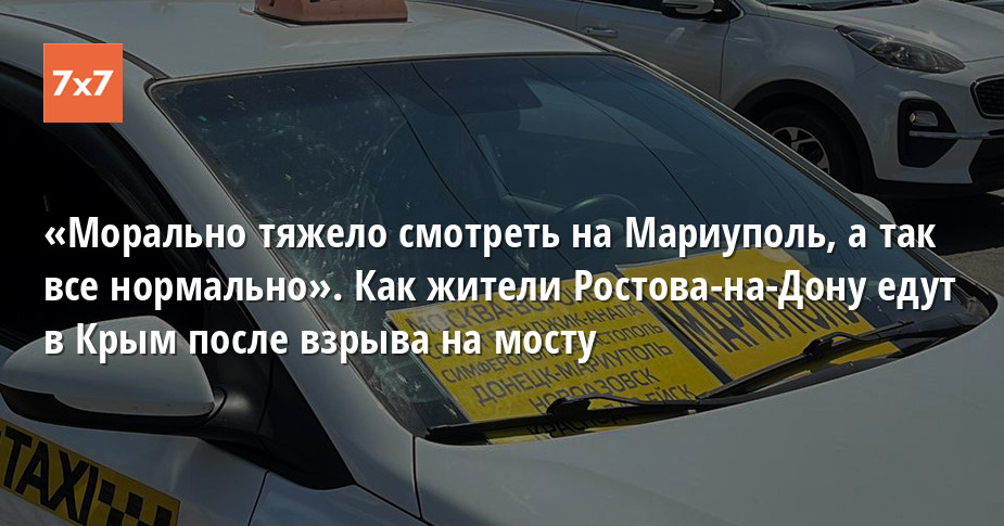 После взрыва на Крымском мосту, который произошел 17 июля, транспортная система до Крыма дала сбой. Россияне, желающие отдохнуть в Крыму, теперь едут через территории, присоединенные к РФ в 2022 году. При этом цены на поездки с водителями-частниками выросли в 20 раз. «7х7» поговорил с жителями Ростова-на-Дону, которые едут в Крым после взрыва на мосту.