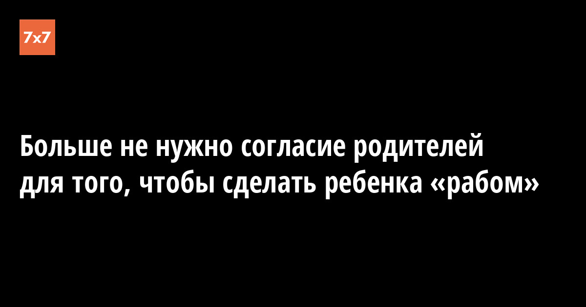 Больше не нужно согласие родителей для того, чтобы сделать ребенка «рабом»