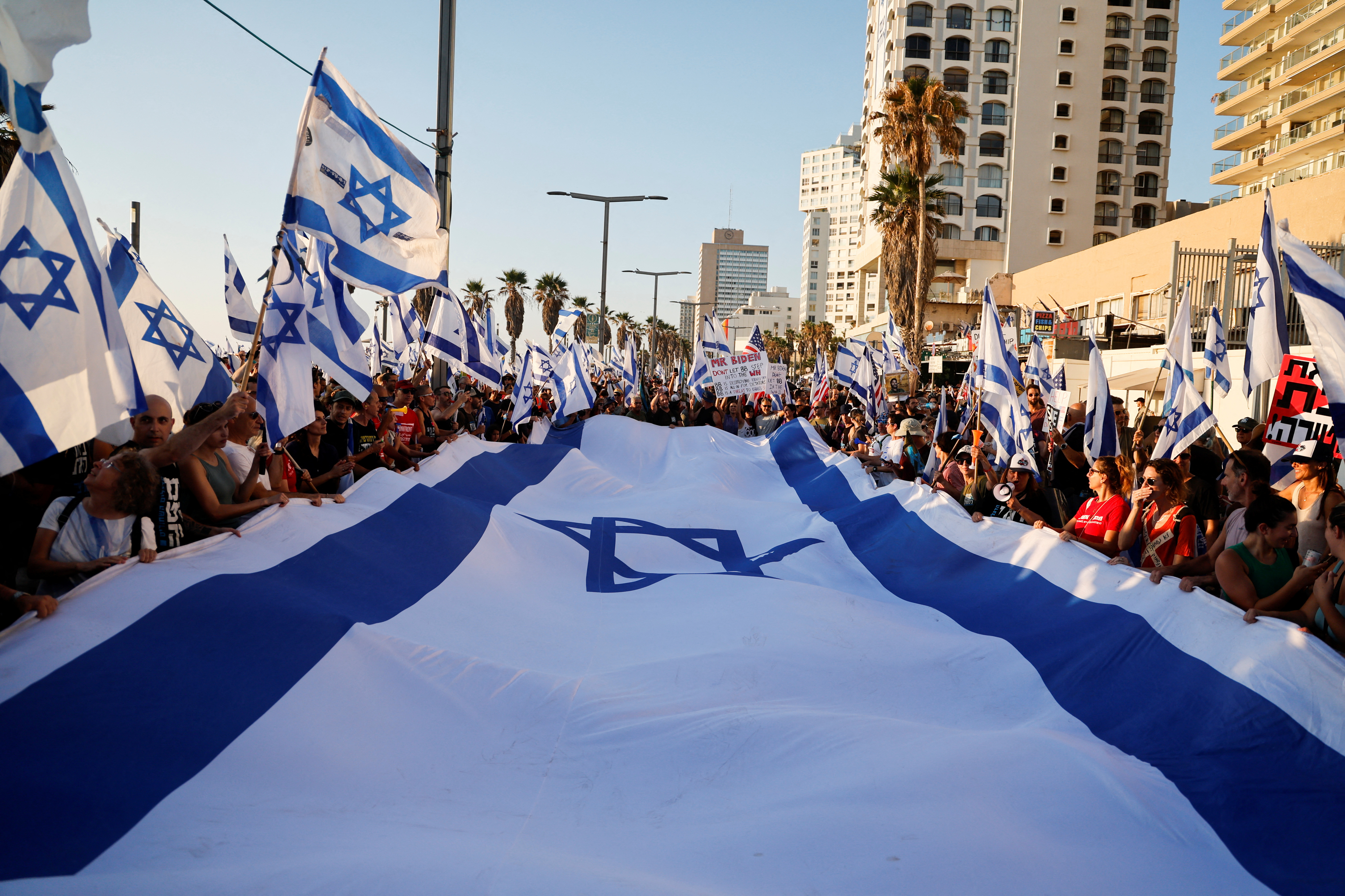 Thousands march from Tel Aviv to Jerusalem Hundreds of protesters became thousands as Israelis joined the 70-kilometer (roughly 45-mile) march throughout the day in a demonstration against one of Israel’s most far-right governments in history. pic.twitter.com/YvpECDBNtD