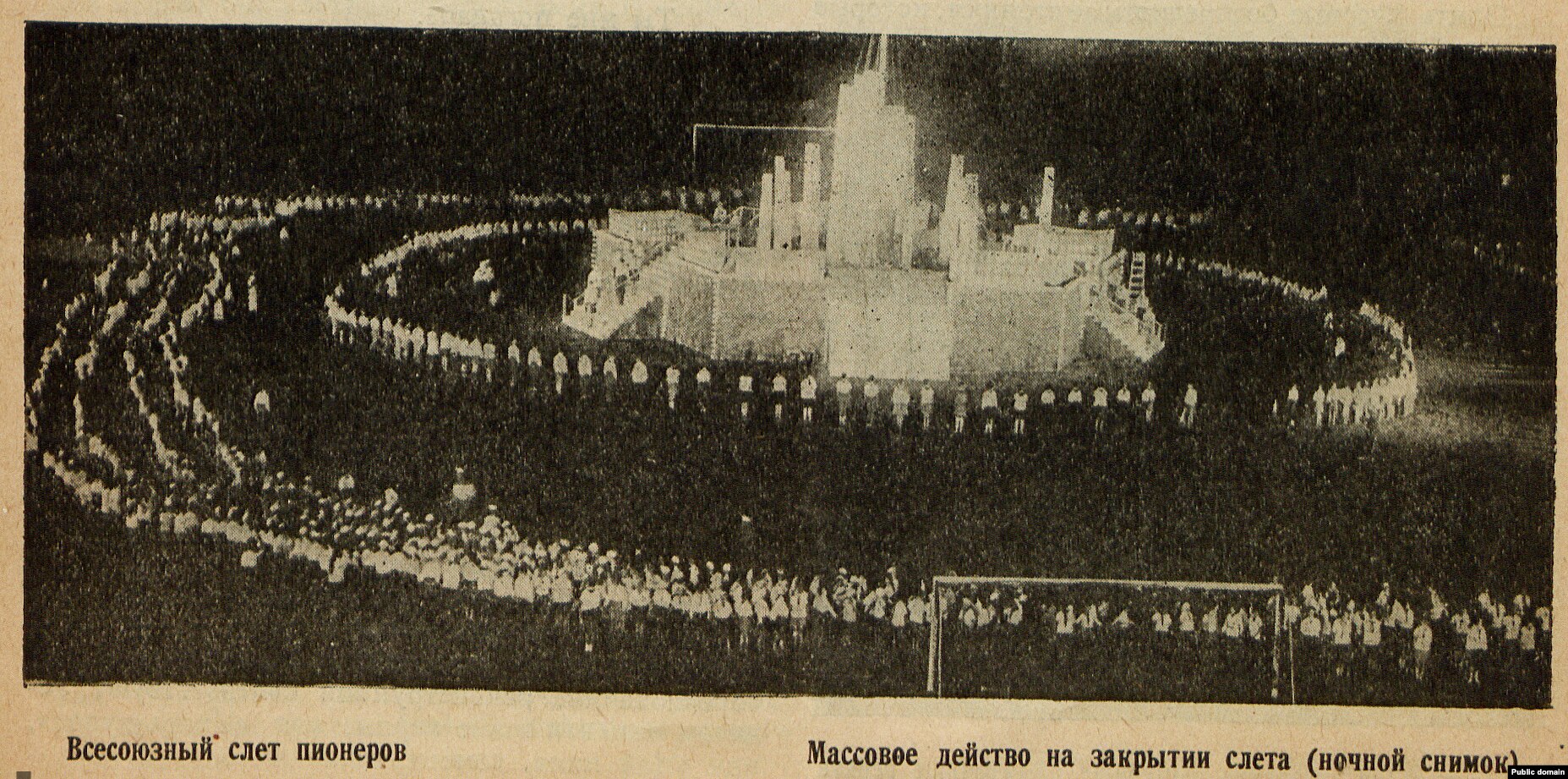 Слет завершился впечатляющим шоу на стадионе "Динамо" в постановке выдающегося режиссера Сергея Радлова. Вот отрывки из репортажа "Пионерской правды":