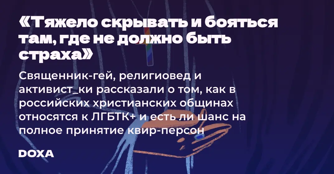Вопрос принятия ЛГБТК+ персон поднимается в христианском мире все чаще. Так, часть протестантских общин уже давно благословляет однополые браки, а англиканская церковь публично извиняется за гомофобию. Однако в России ситуация с квирофобией становится лишь хуже: Госдума принимает законы против «гей-пропаганды», власти давят на ЛГБТК+ сообщество, а Патриарх Кирилл объясняет войну в Украине борьбой «с гей-парадами». Корреспондент DOXA решил разобраться в том, как соотносятся эти две тенденции, и узнал, как в российских христианских общинах обстоят дела с принятием ЛГБТК+ верующих.