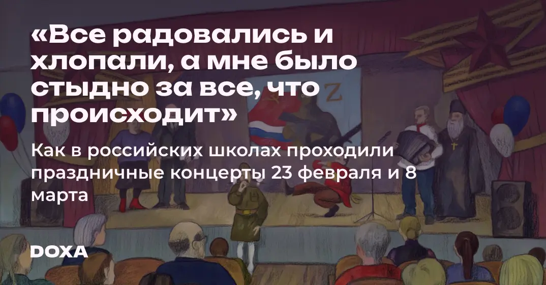 С начала полномасштабного вторжения в российских школах кратно увеличилось количество мероприятий, направленных на «патриотическое воспитание молодежи». Их пик пришелся на период между 23 февраля и 8 марта 2023 года. Школьни_цы проводили концерты для росгвардейцев, военных и жен мобилизованных, детей заставляли участвовать в конкурсе по надеванию противогазов и читать стихи про Донбасс. Мы узнали, как проходили концерты в российских школах за эти две недели.