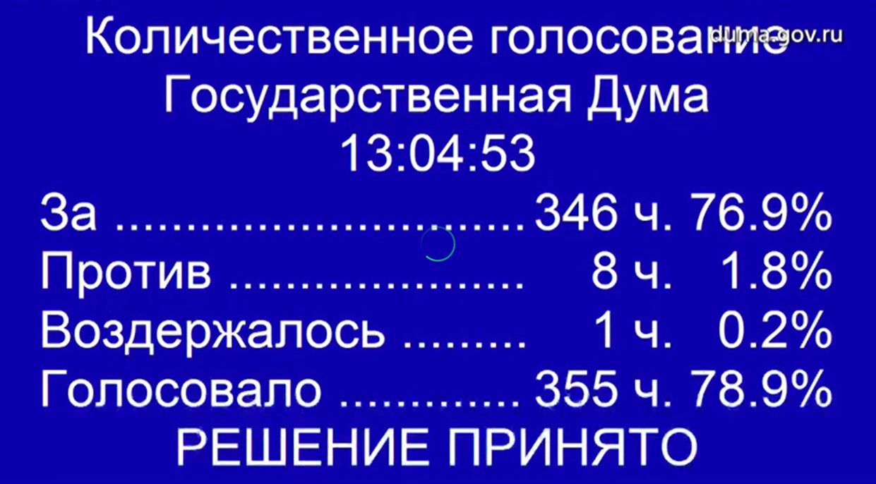 Закон в итоге был принят большинством голосов при восьми «против» и одном воздержавшемся.