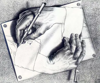 Еще со студенческих лет я был очарован глубокими отношениями, лежащими в основе, казалось бы, далеко отстоящих друг от друга областей. Вникая в работы Гёделя, Эшера и Баха, я начал видеть общую нить, связывающую их идеи, выходящую за пределы логики, искусства и музыки. Это понимание легло в основу моей книги. Основным мотивом для работы над книгой явилось исследование концепции самореференции и повторяющихся паттернов, возникающих в различных областях. Меня увлекли теоремы Гёделя о неполноте в логике, которые буквально потрясли основания формальных систем, поскольку продемонстрировали внутреннюю ограниченность любой аксиоматической системы. Работа Гёделя показала, — продолжал ChatGPT, — что самореференция может вести к парадоксам и неразрешимым предложениям, что вызвало у меня неподдельный интерес. В творчестве Эшера я увидел схожее увлечение самореференцией и рекурсией, поскольку его картины часто изображали сцены, которые зацикливались на самих себе, создавая визуальные парадоксы и невозможные в реальности структуры. Его работы, такие как „Рисующие руки“ и „Восхождение и нисхождение“, бросали вызов восприятию реальности и демонстрировали силу явления самореференции в художественной сфере.