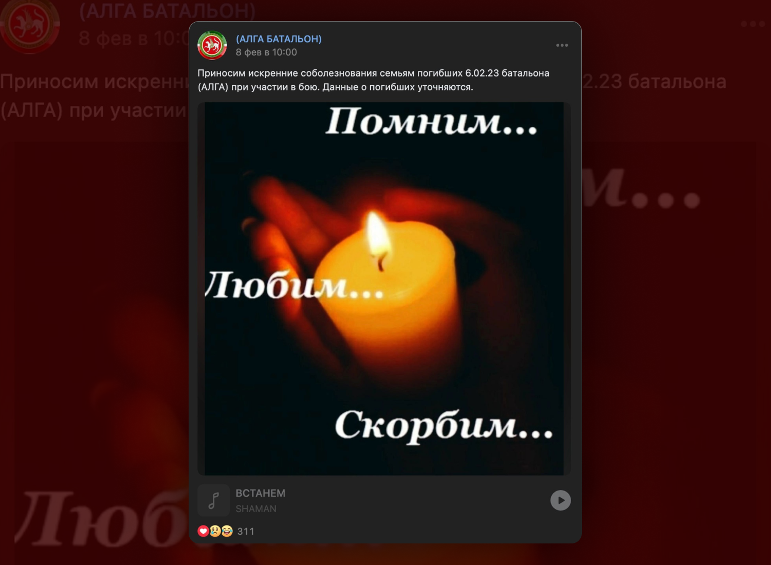 О том, что при неудачном штурме под Угледаром погибли бойцы татарстанского батальона "Алга", стало известно утром 8 февраля. Информация об этом без каких-либо подробностей появилась в паблике "Алга" во "ВКонтакте". В публикации сообщалось, что батальон понес потери 6 февраля, а "данные о погибших уточняются". Позже эту информацию начали публиковать и украинские ресурсы, которые утверждали, что ВС РФ не забрали тела погибших.