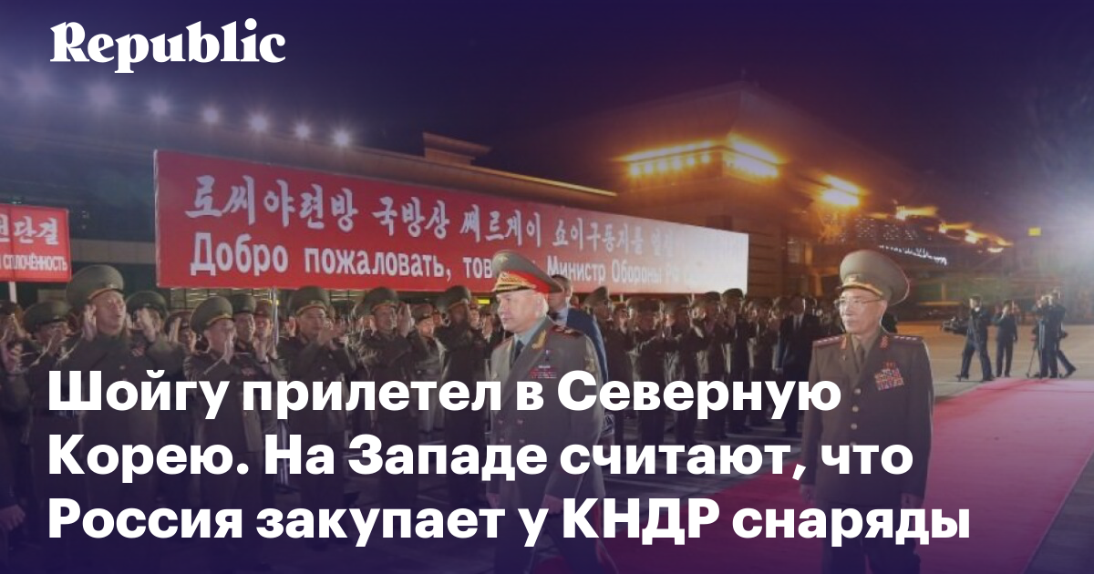Глава Минобороны РФ Сергей Шойгу прибыл с официальным визитом в Северную Корею. В аэропорту Пхеньяна российскую делегацию встречали министр обороны страны Кан Сун Нам и рота почетного караула. Шойгу уже провел рабочие переговоры и поучаствовал в торжественных мероприятиях. Западные политики и эксперты считают, что Россия закупает у КНДР снаряды для войны в Украине.