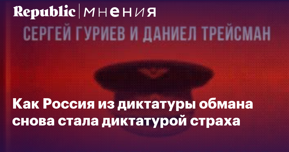 Фонд Бориса Немцова выпустил русский перевод книги экономиста Сергея Гуриева и политолога Даниела Трейсмана «Диктаторы обмана: новое лицо тирании в XXI веке». Гуриев и Трейсман описывают новый вид автократии — информационную, в которой диктатор опирается не на страх, а на обман, манипуляцию информацией и пропаганду, при этом более или менее удачно изображая демократического правителя. Диктатурой обмана, пишут они, была и Россия времен Владимира Путина, но уже в середине 2010-х начался разворот к диктатуре страха, который теперь можно считать завершенным.