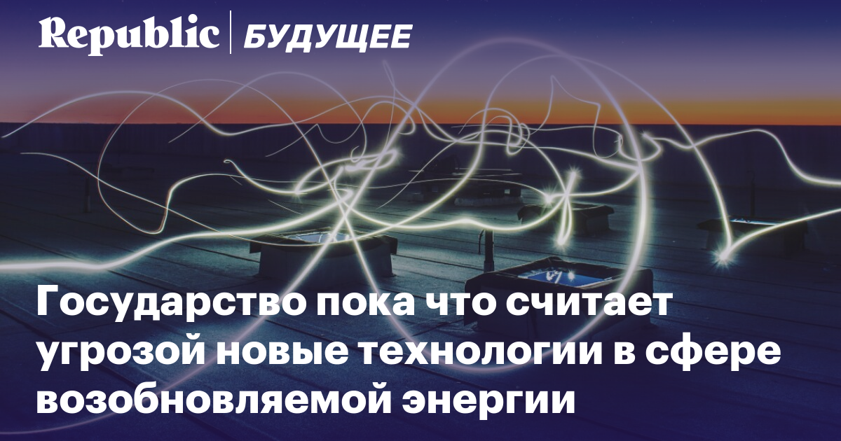 новые технологии в сфере возобновляемой энергии будут восприниматься государством скорее как угроза.