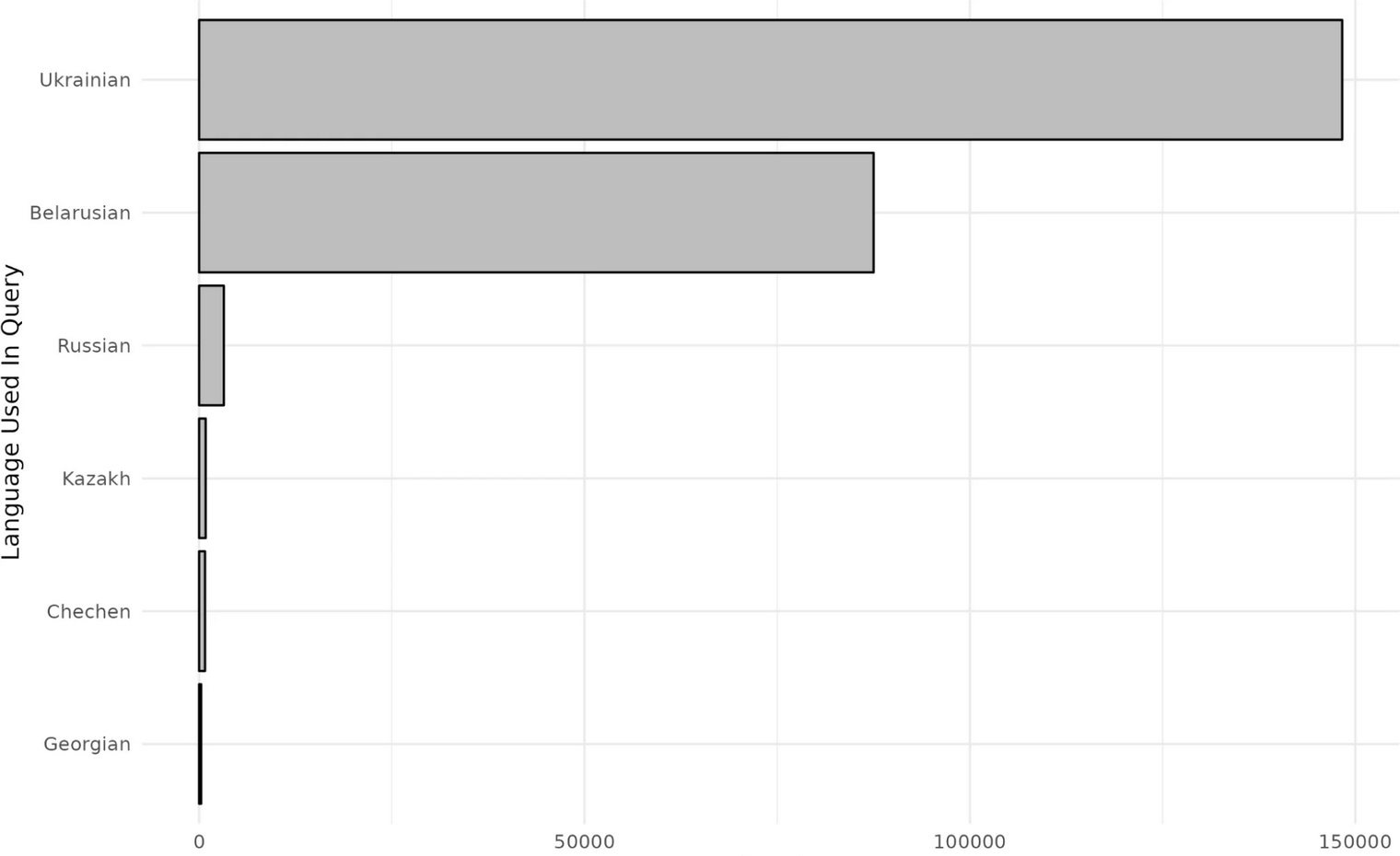 Для каждого из этих языковых изданий «Википедии» авторы отсортировали статьи по общему количеству просмотров за январь, февраль и март 2023 года, расположив их в порядке убывания популярности. Главной задачей было сравнить, как работают ограничения ВК в Канаде, а также в России и Украине (странах, занимающих первое и третье места по числу посетителей ВК соответственно).