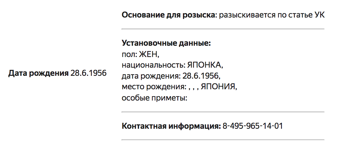 «Медиазона» проверила информацию и обнаружила в базе розыска карточку на имя Аканэ Томоко — то есть, МВД перепутало имя и фамилию судьи.