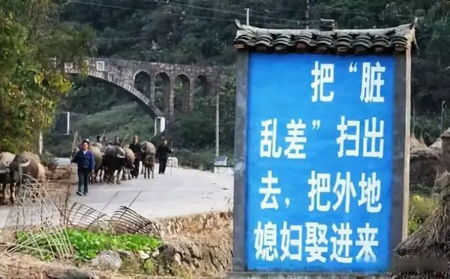 На въезде в холостяцкую китайскую деревню установлен щит, на котором написано: "Почистим и приведём в порядок нашу деревню, дабы привадить невест из других мест