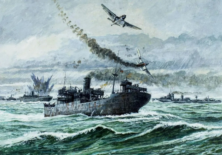Разгром конвоя PQ-17. Картина британского художника Брайана Сандерса, 1992