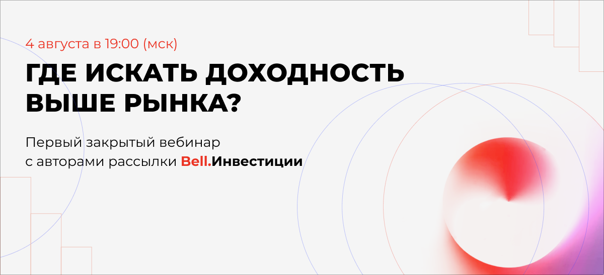 4 августа в 19:00 по Москве приглашаем вас на закрытый онлайн-вебинар с нашими экспертами — редактором рассылки «Bell.Инвестиции» Вячеславом Дворниковым и ее постоянными авторами, профессиональными финансовыми аналитиками. У вас будет уникальная возможность задать свои вопросы и получить рекомендации из первых рук. Для этого достаточно подписаться на рассылку «Bell.Инвестиции». Все подробности о встрече здесь.