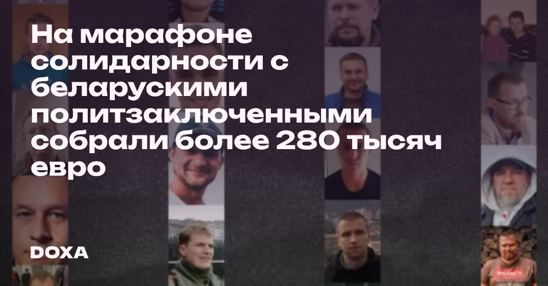 На марафоне солидарности с беларускими политзаключенными и их семьями «Нам не ўсё адно!» собрали более 280 тысяч евро. В марафоне участвуют офис Светланы Тихановской, NEXTA, «Зеркало», «Медиазона.Беларусь», правозащитный центр «Вясна», Анархический черный крест и другие организации и медиа.