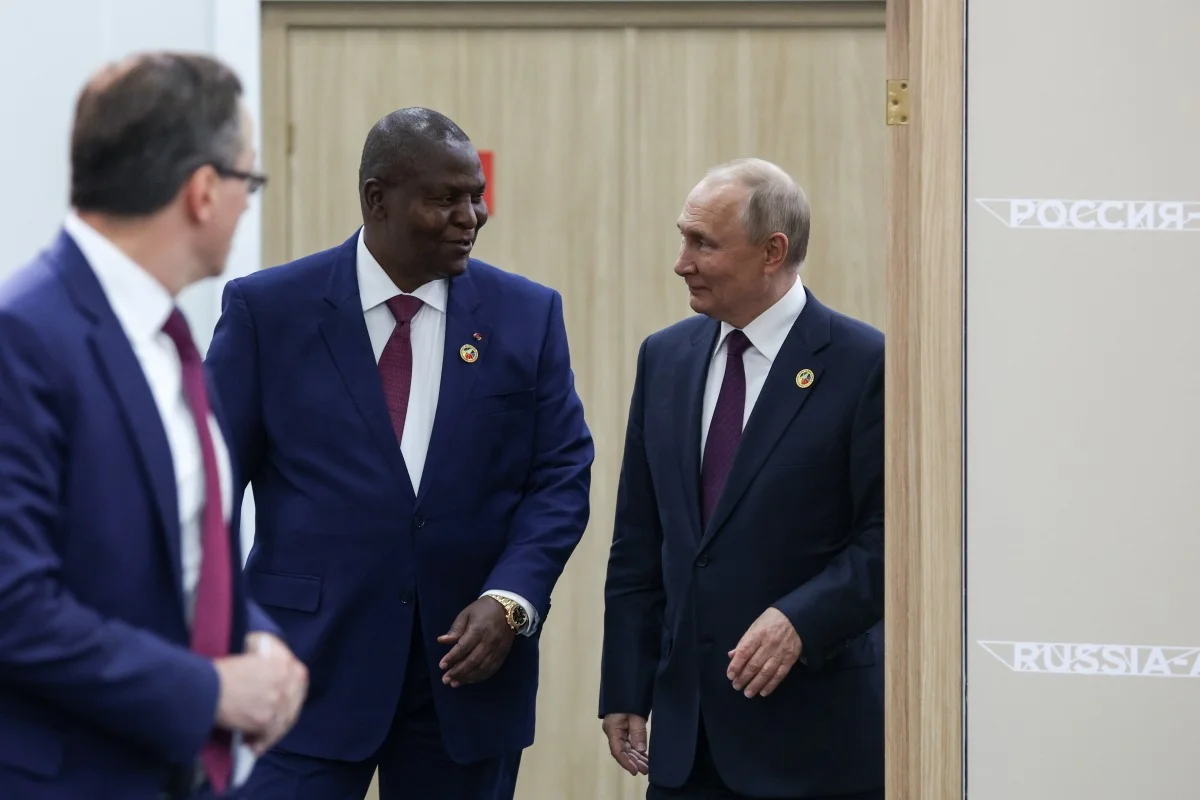 27 июля, в день открытия саммита, г-н Сытый опубликовал фотографию своего шефа Пригожина, на которой тот (в принадлежащем ему петербургском отеле Trezzini — где, к слову, в день «путча» следователи, как подтвердил и сам Пригожин, обнаружили «газель и два автобусика» с деньгами, которые предназначались на выплату «зарплат» его боевикам и «компенсаций за груз 200») пожимает руку Фредди Мапуке, начальнику протокола президента Центральноафриканкой Республики.