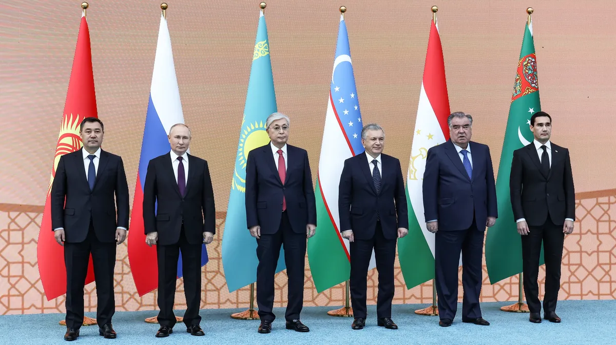 Садыр Жапаров, Владимир Путин, Касым-Жомарт Токаев, Шавкат Мирзиёев, Эмомали Рахмон и Сердар Бердымухамедов. Фото: ЕРА