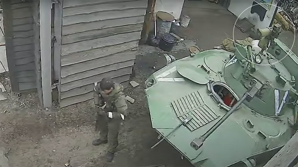Противотанковый ракетный комплекс, установленный на БМД-2. Съемки камер видеонаблюдения в Буче