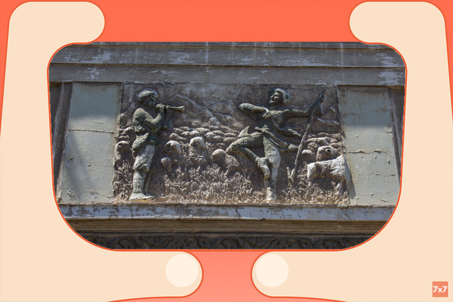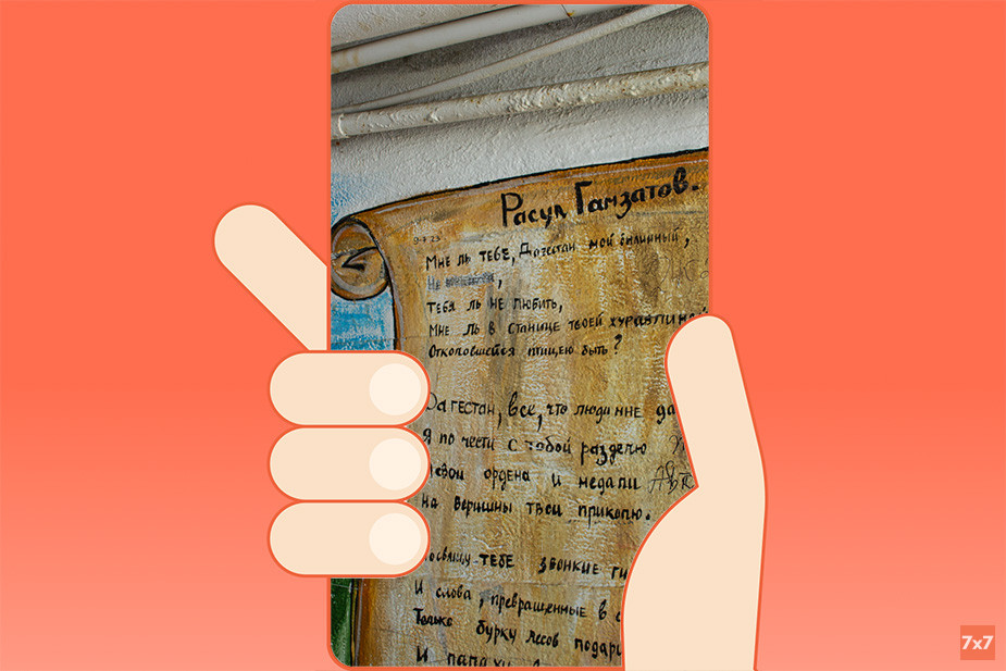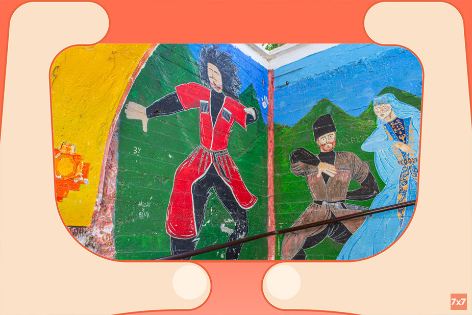 Далее стоит проложить маршрут до уже упомянутого дома-корабля. Если пройдете от него по улице Буйнакского дальше, увидите огромные настенные муралы на здании гостиницы «Каспий». Их создал махачкалинский художник Андрей Калугин. Поиск его работ по Махачкале и Дербенту может стать отдельным приключением. А если увидите похожие по стилю работы в Татарстане, Забайкальском крае, Новгородской и Московской областях, не удивляйтесь — это тоже Андрей.