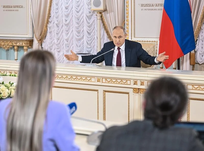 Пресс-конференция президента РФ Путина по итогам второго саммита Россия—Африка. Фото: Сергей Бобылев / ТАСС