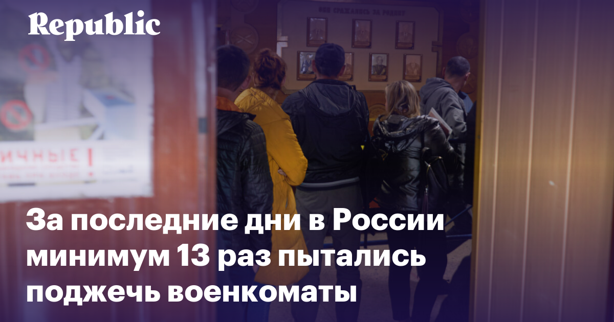 В России резко выросло число попыток поджогов военкоматов — не менее 13 случаев за последние дни. Инциденты произошли в Воронежской, Московской, Калужской, Омской, Челябинской, Саратовской, Архангельской областях, Крыму, а также в Санкт-Петербурге и Казани. Об этом сообщают телеграм-каналы Baza, Sota, Astra, Shot, Mash и «Осторожно, новости». Некоторые задержанные рассказывают, что их заставляли идти на преступления телефонные мошенники. В большинстве случаев поджигателями оказались женщины. Republic собрал всю известную по этому поводу информацию.