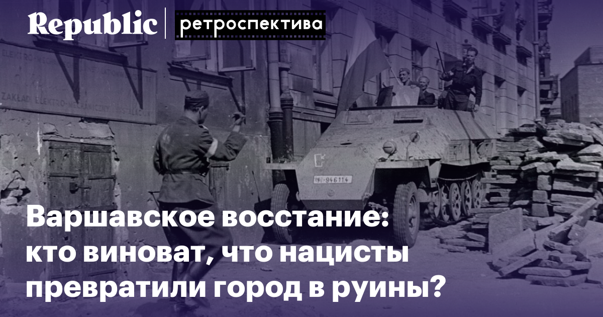 В России и Польше исторически сохранялись два противоположных взгляда на случившееся. Одна сторона утверждала, что восстание изначально представляло гиблую авантюру, а его организаторы цинично использовали соотечественников для своих политических целей. Другая заявляла, что всё могло выйти иначе — просто стоявшие у варшавских предместий советские войска намеренно не поддержали восставших. Попробуем разобраться, что же произошло в самом центре Европы ровно 79 лет назад.