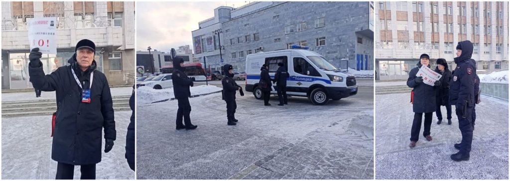 7 июля 77-летний Гилин снова вышел на пикет к зданию краевой администрации. «Требую исключить из политической повестки дня ядерный шантаж и ядерный терроризм!» — написал он на плакате.