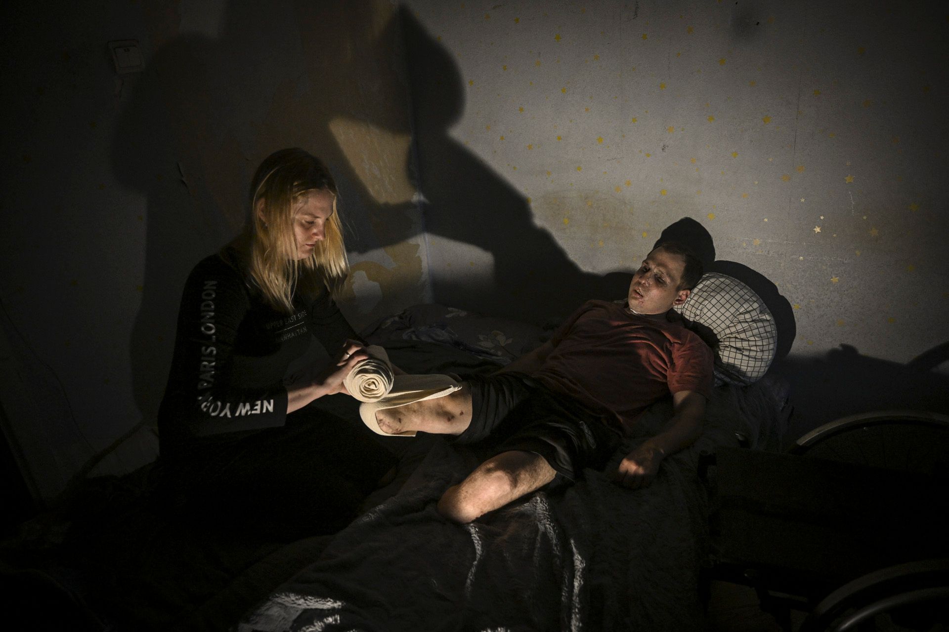 Украинский военнослужащий Сергей Райлян, командир минометно-артиллерийской группы 79-й десантно-штурмовой бригады, в 2022 году лишился зрения и ног во время подрыва автомобиля на противотанковой мине под городом Марьинкой в Донецкой области. Он несколько месяцев проходил реабилитацию, а теперь восстанавливается дома. Райлян готовится к протезированию, заново учится ходить и надеется восстановить часть зрения.