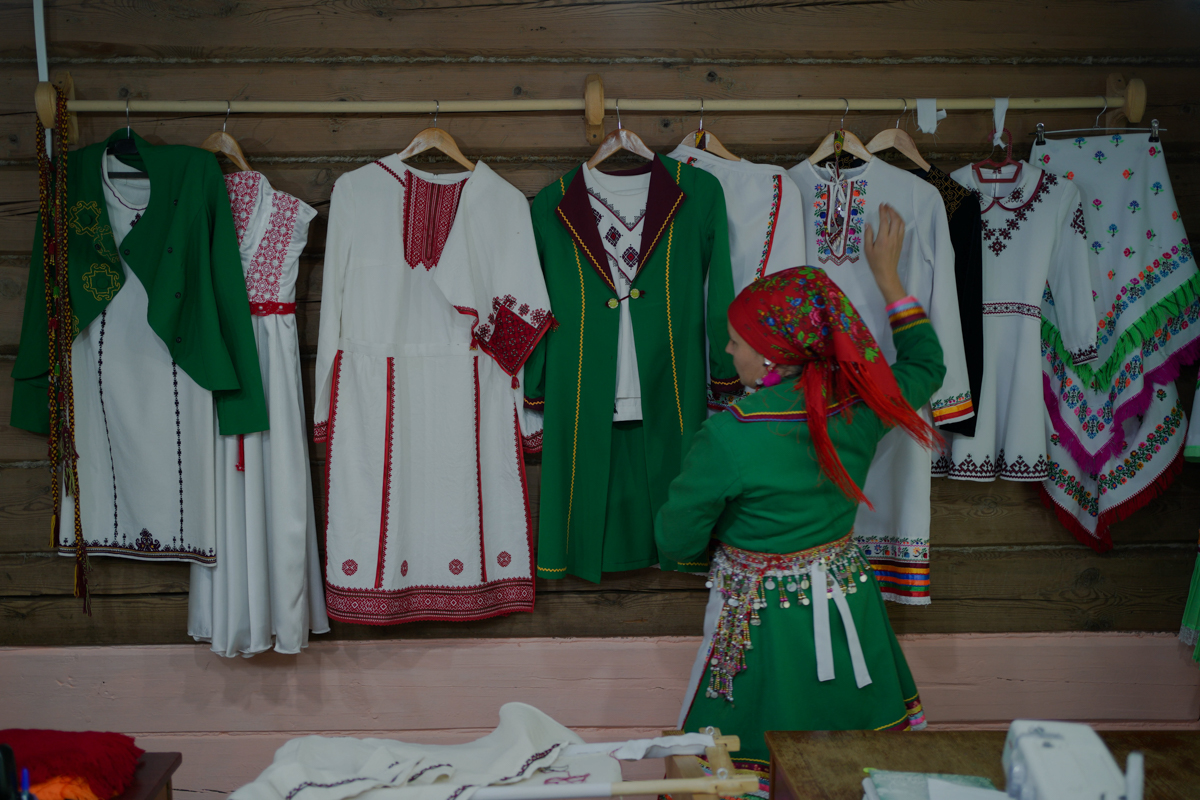 Марийские национальные костюмы в студии по марийской вышивке «Акреттур» («Древняя вышивка»), село Шлань, Марий Эл