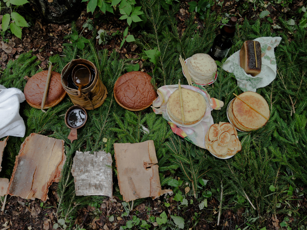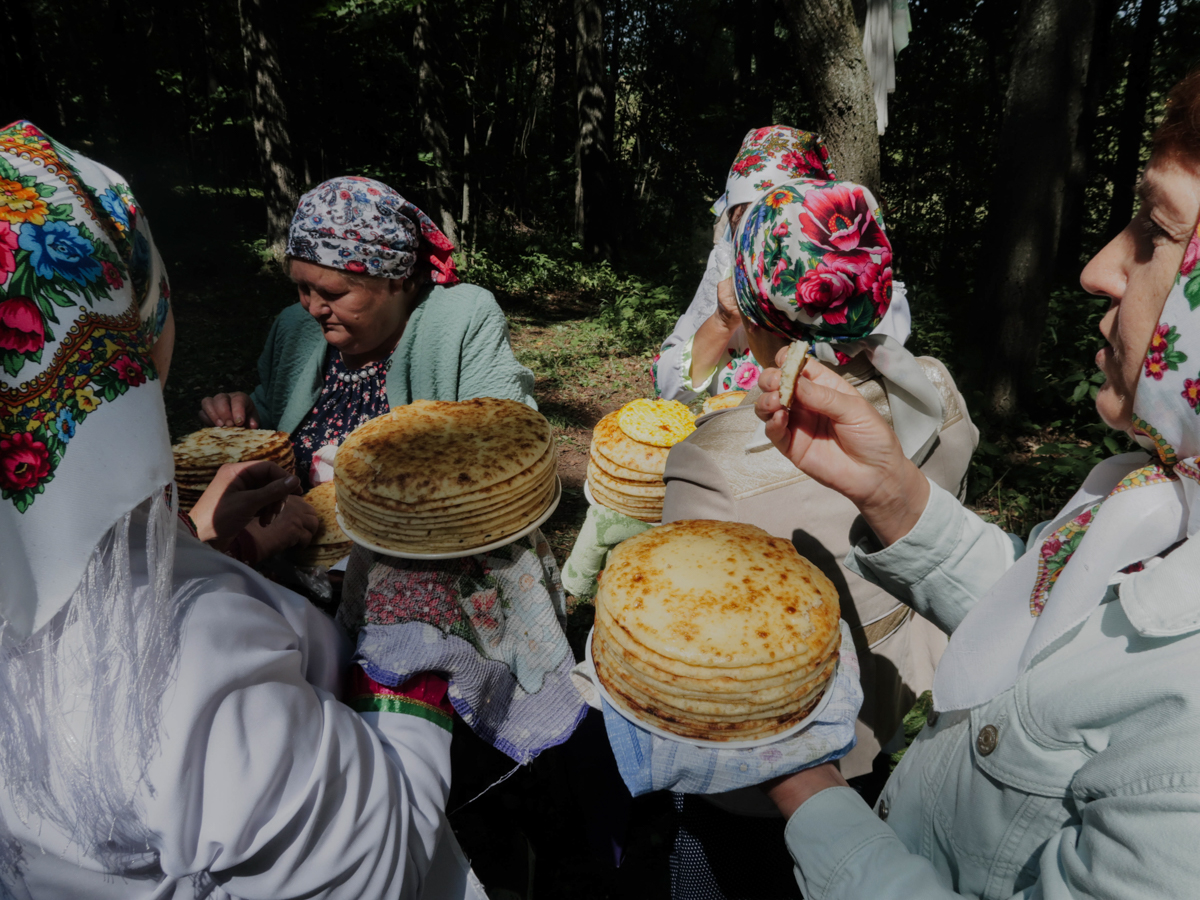Гусиное крыло используют для смазывания маслом марийских блинов «коман мелна», село Шлань, Марий Эл