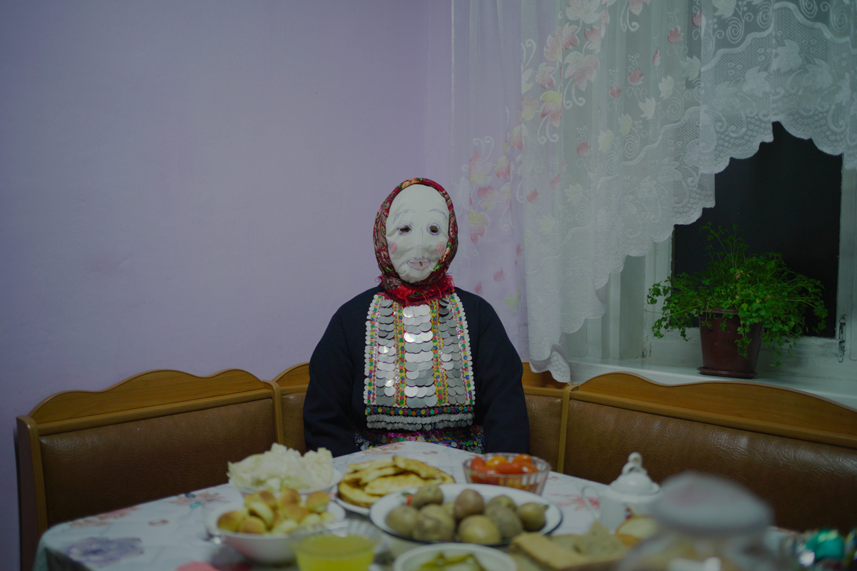 Ряженая в доме одной из жительниц села Шлань на праздновании марийского Нового года Шорыкйол
