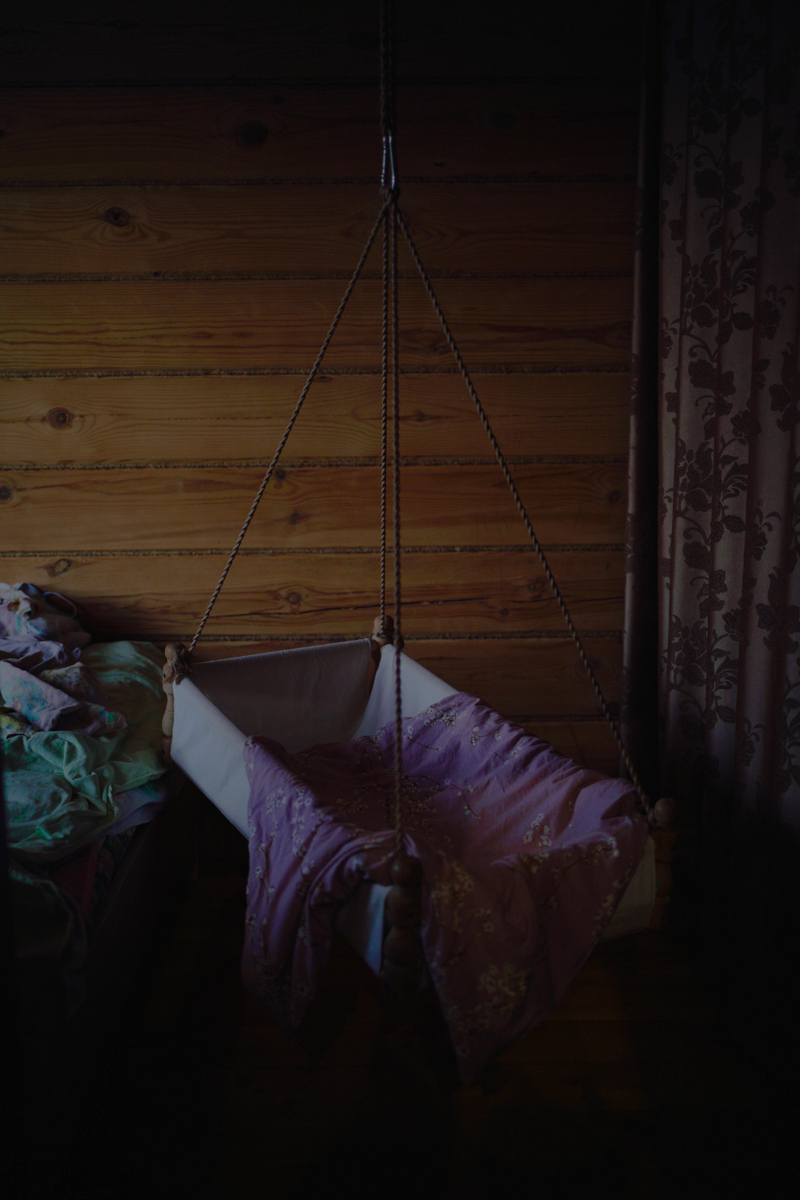 Детская колыбель в доме одного из жителей марийского села Шоруньжа, сделанная им вручную