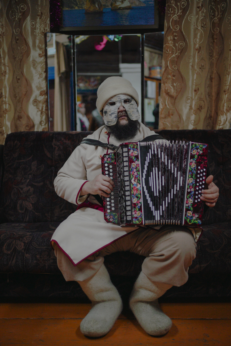Один из жителей на праздновании марийского Нового года Шорыкйол, который отмечался в начале января в сельском клубе в селе Шлань. Шорыкйол насыщен песнями и плясками, особенностью становится участие ряженых