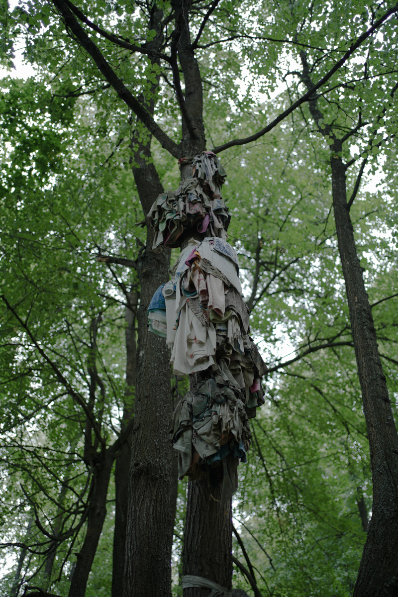 Жертвенные полотенца в священной роще села Шоруньжа на коллективных молениях Сурем