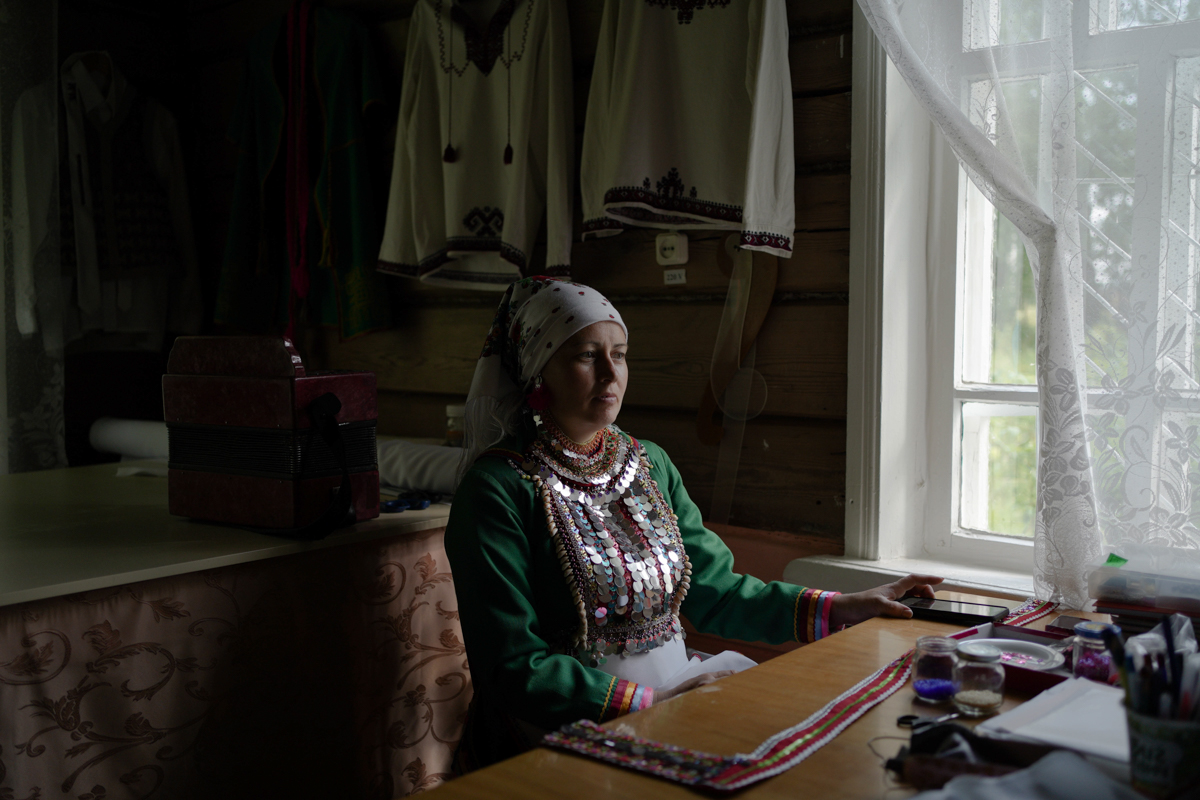 Марина Гаврилова — руководитель студии по марийской вышивке «Акреттур» в селе Шлань, Марий Эл. Исторически вышивка орнаментов была одним из популярных занятий мариек