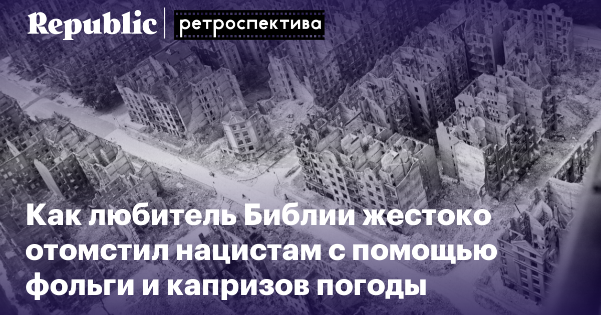 Летом 1943 года апофеозом тому стала кошмарная неделя в Гамбурге. Операцию по его ковровой бомбардировке британцы удивительно прозорливо окрестили «Гоморрой» — в честь ветхозаветного города, по преданию, испепелённого за грехи жителей. Главный вдохновитель подобных акций, генерал ВВС Артур Харрис, вообще любил Библию, хоть и обрекал людей на смерть тысячами. И от многочисленных критиков своей стратегии сэр Артур часто отбивался той самой цитатой про ветер и бурю. Но насколько оправданными были его способы вести войну?