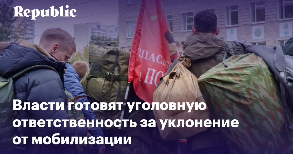 В России продолжается законодательная работа, нацеленная «на большую войну». После принятия Госдумой и Советом Федерации целой пачки новых законов, касающихся военной службы, в правительстве неожиданно поддержали подзабытый законопроект о введении уголовной ответственности за уклонение от призыва по мобилизации или в военное время. Если параметры законопроекта устоят и документ будет принят, за злостную неявку по мобилизационной повестке смогут сажать на срок до 5 лет. Republic рассказывает, что известно об этой инициативе.