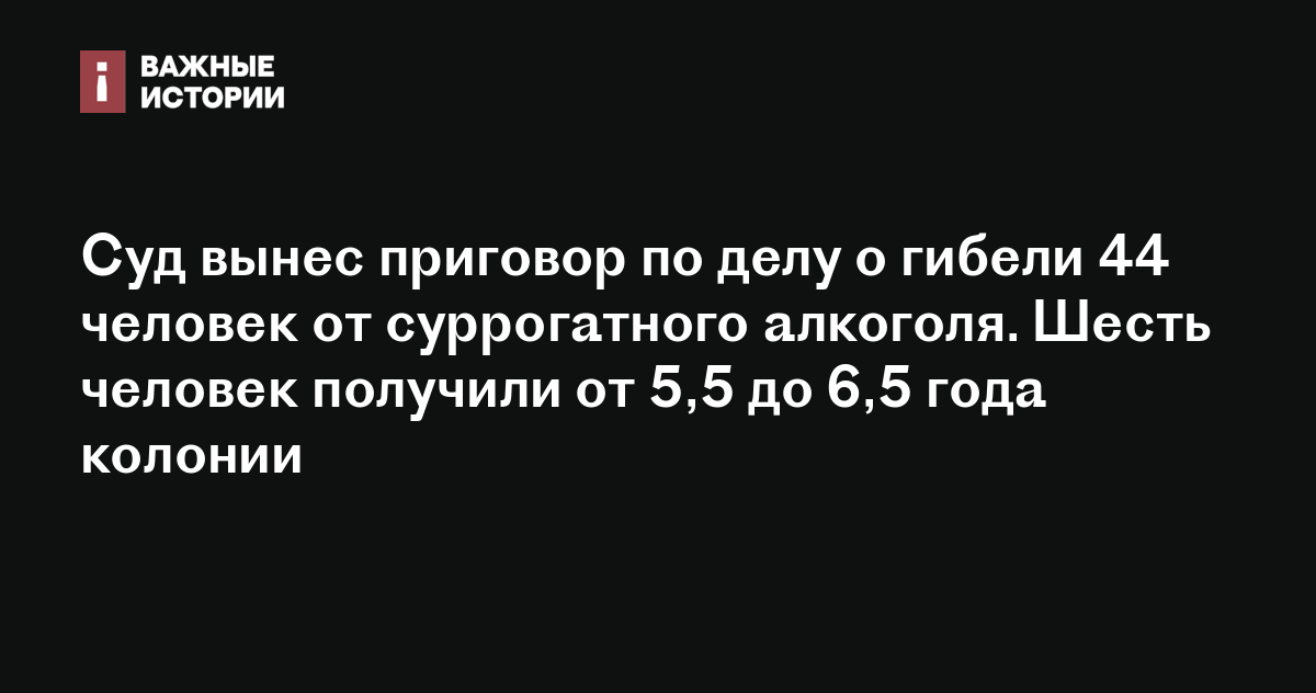 Суд вынес приговор по делу о гибели 44 человек от суррогатного алкоголя. Шесть человек получили от 5,5 до 6,5 года колонии