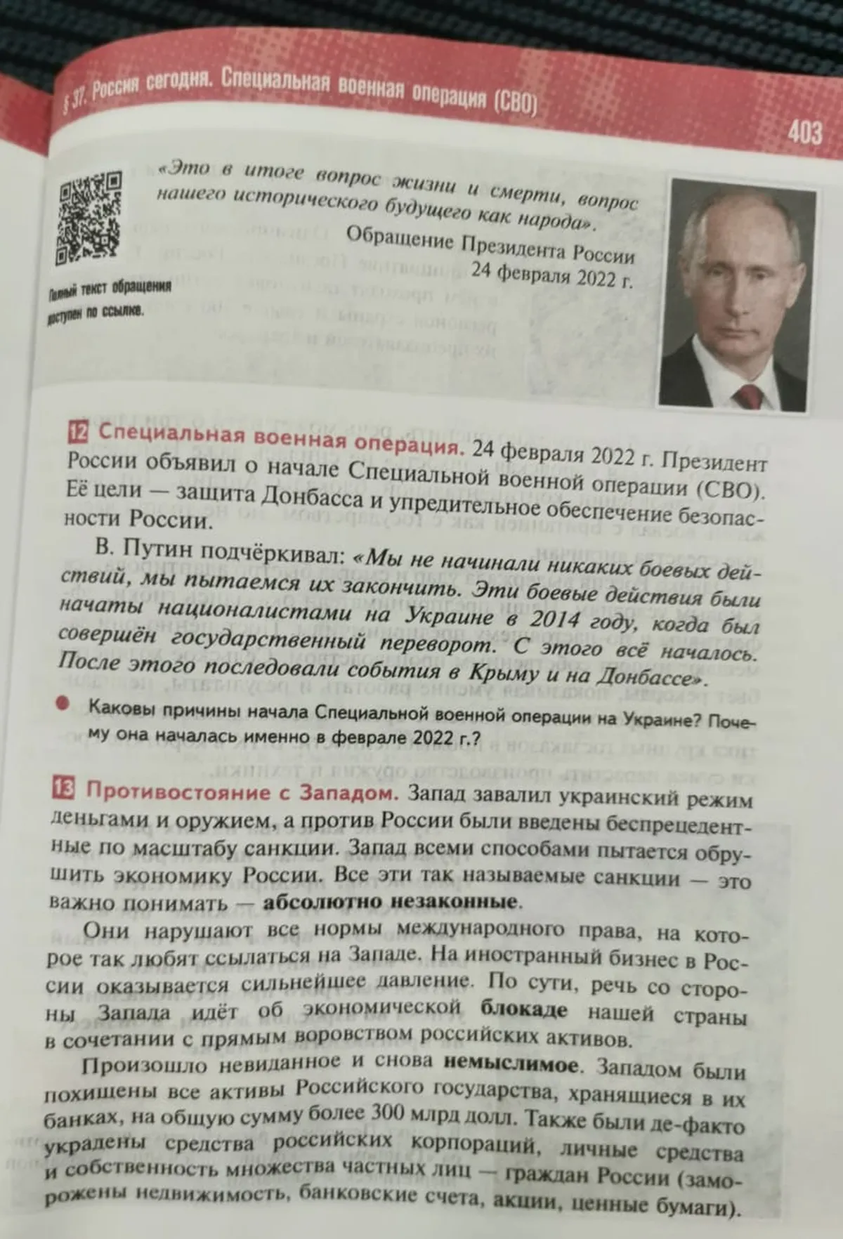 Тираж учебника выпустило издательство «Просвещение». Его возглавляет топ-менеджер Газпромбанка Наталья Третьяк, а само издание контролируют Сбербанк, РФПИ и ВЭБ.РФ — они получили по 25% акций в 2021 году.