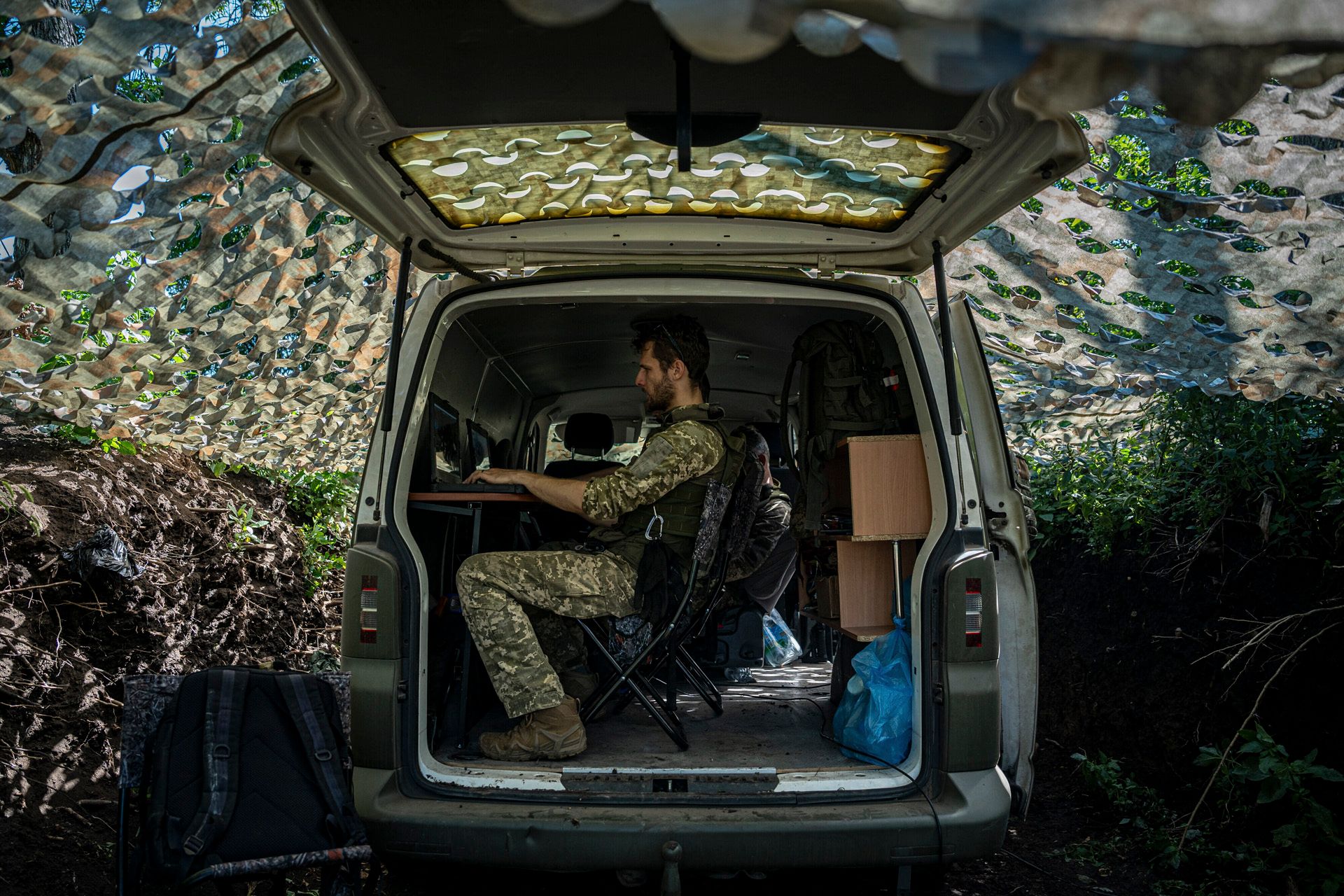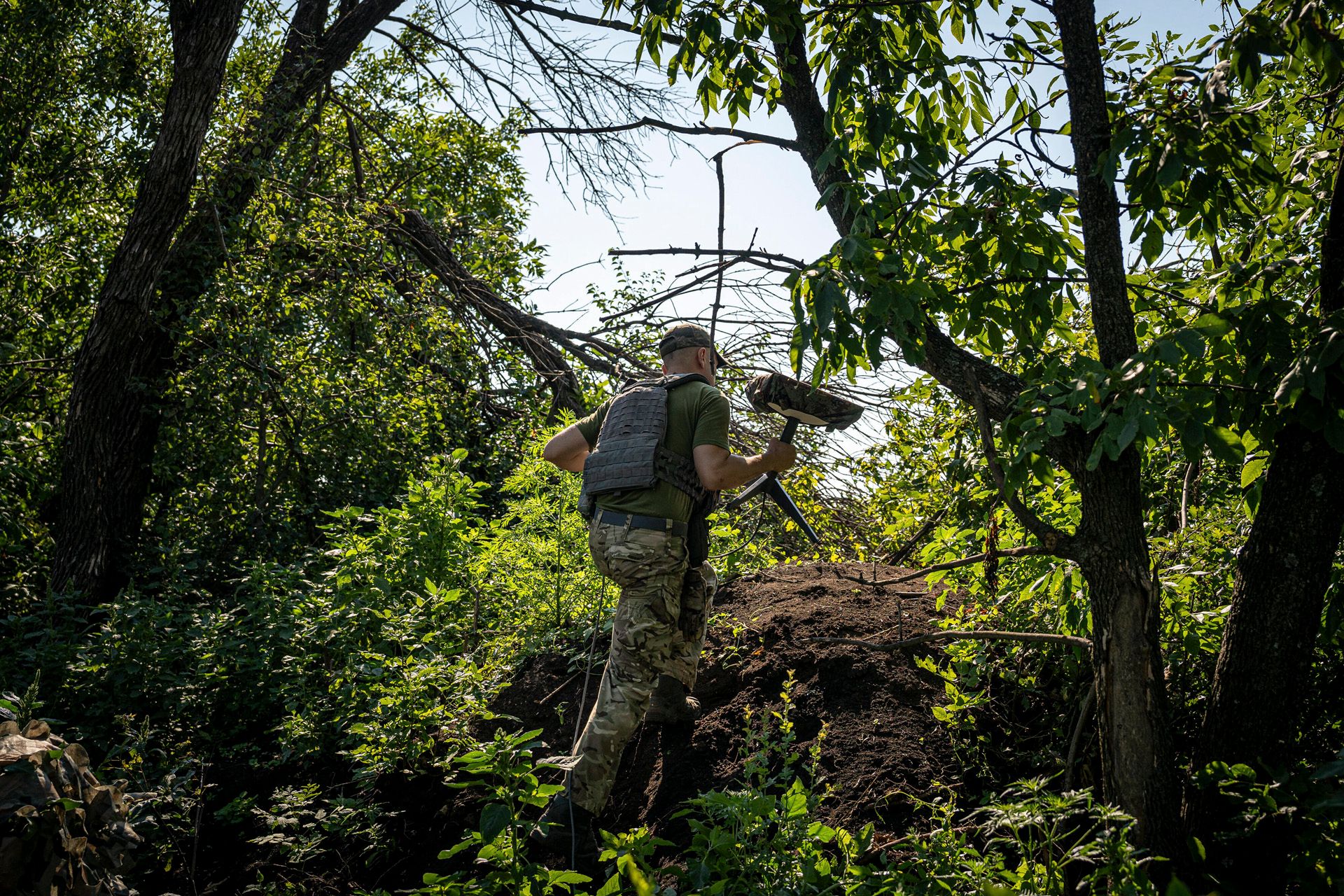Украинские солдаты с дроном-разведчиком в Донецкой области