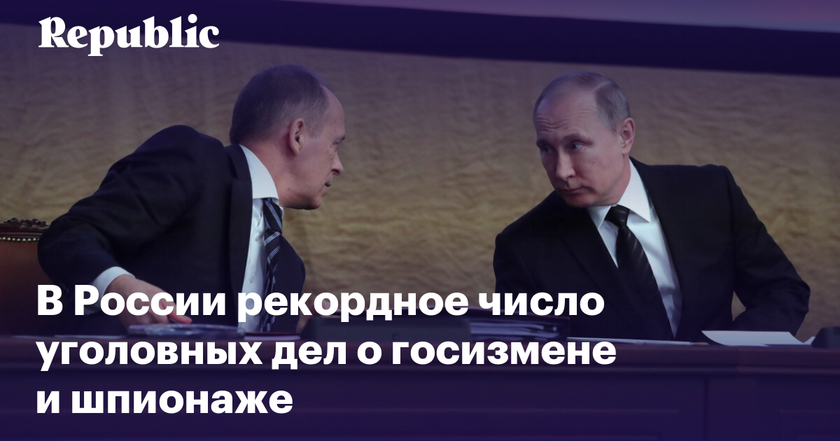 Издание «Холод» провело исследование и установило, что в этом году в России рекордное число уголовных дел о госизмене — их будет больше, чем за предыдущие 20 лет. Дела рассматриваются в закрытом режиме, о некоторых случаях ФСБ даже не сообщает. Так что, указывает издание, на самом деле дел больше, чем удалось найти. Ранее о всплеске дел о госизмене писали в РБК, там отмечают рост дел по этой статье в Москве.