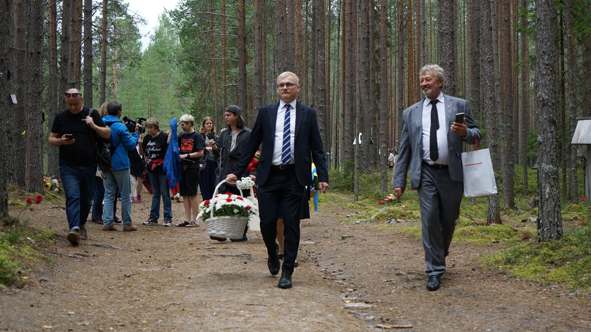 Представители консульств Германии, Швеции, Чехии, Польши, Норвегии и другие возложили цветы к памятным знакам украинцам, полякам, евреям, немцам, американцам, финнам, литовцам, норвежцам, чехам, русским, чьи тела были зарыты в этих страшных ямах.