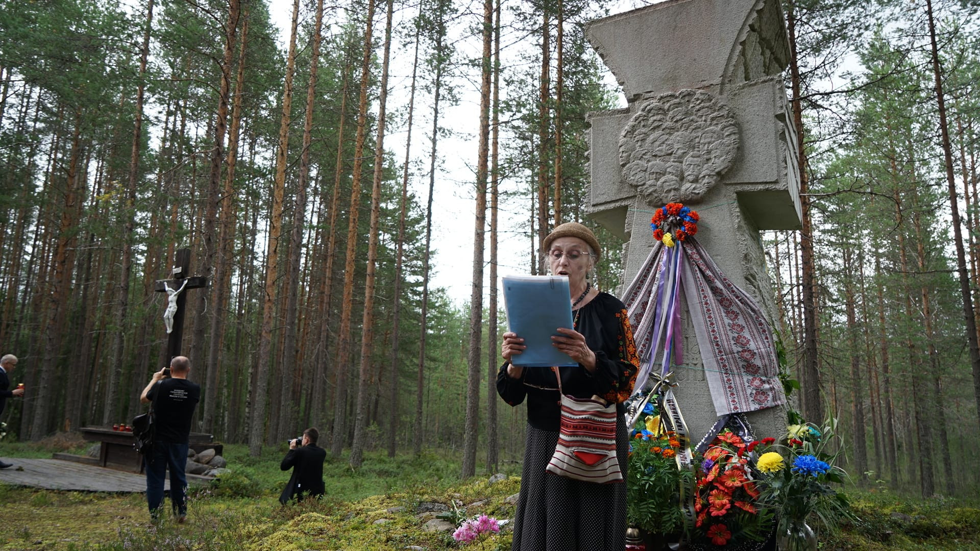 Все те часы, что приехавшие из разных городов активисты провели в Сандармохе, они читали имена убиенных. Видеотрансляция чтения имен проходит сегодня и во многих городах мира, ее можно посмотреть по ссылке https://youtu.be/mpoYSRt9mrs