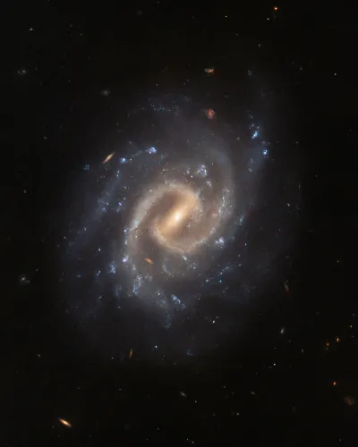 Телескоп «Хаббл» в свою очередь занимался привычным делом — тем, что у его получается лучше всего, — портреты далеких-далеких галактик. В этот раз нам представлен шикарный портрет спиральной галактики UGC 12295 [1]. Эта галактика находится на расстоянии около 192 млн световых лет от Земли в созвездии Рыб. Она расположена очень удачно: земной наблюдатель может видеть всё великолепие галактического диска с его яркой центральной перемычкой и плотными спиральными рукавами с яркими голубыми областями звездообразования.